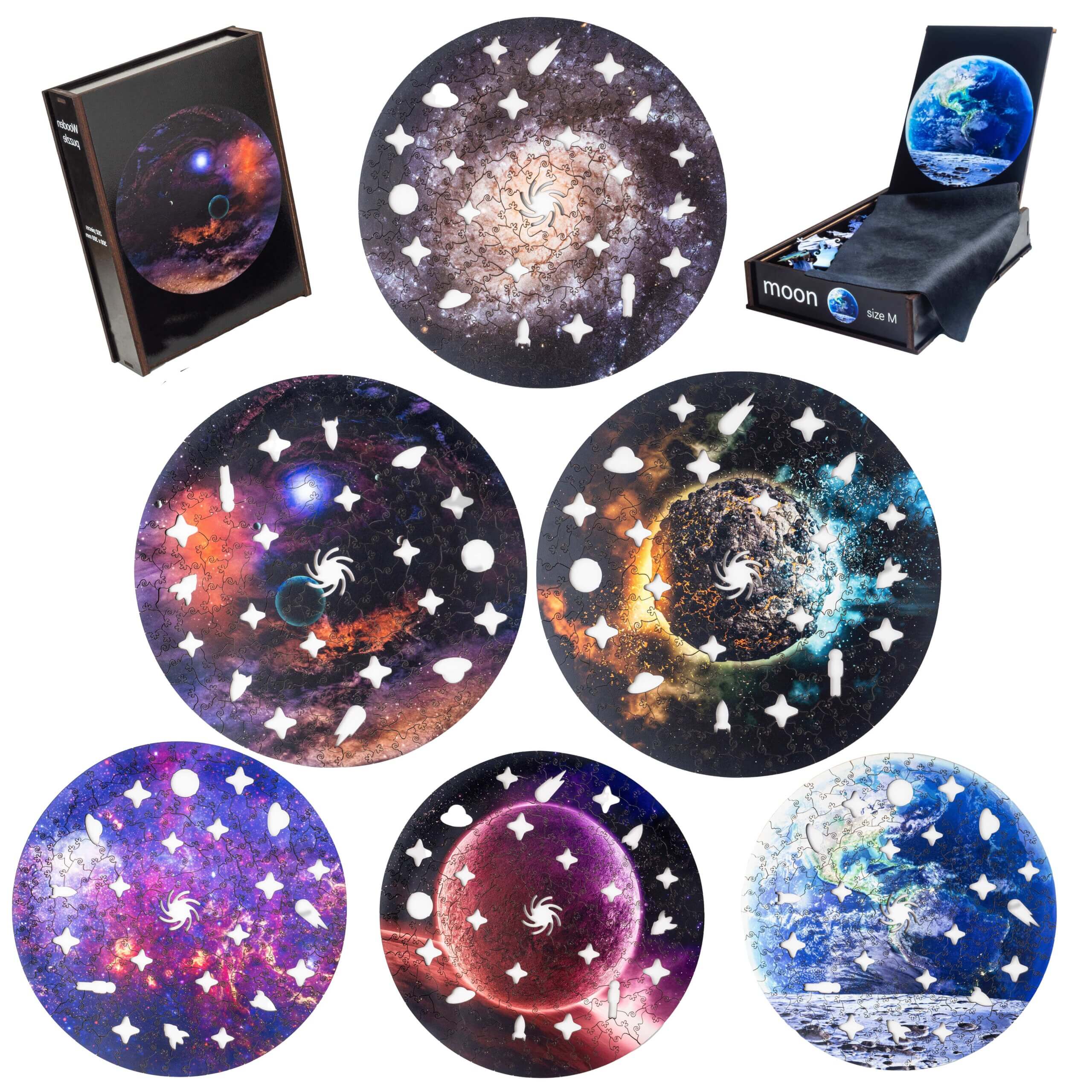 Комплект деревянных Пазлов из коллекции космос и животные. Закажите сразу несколько Пазлов на выбор из наличия и приобретите их с выгодной скидкой! После оформления заказа с вами свяжется менеджер и обсудит, какие пазлы вы хотите видеть. Либо вы можете сами с нами связаться в любом удобном мессенджере либо оставить комментарий при оформлении заказа.