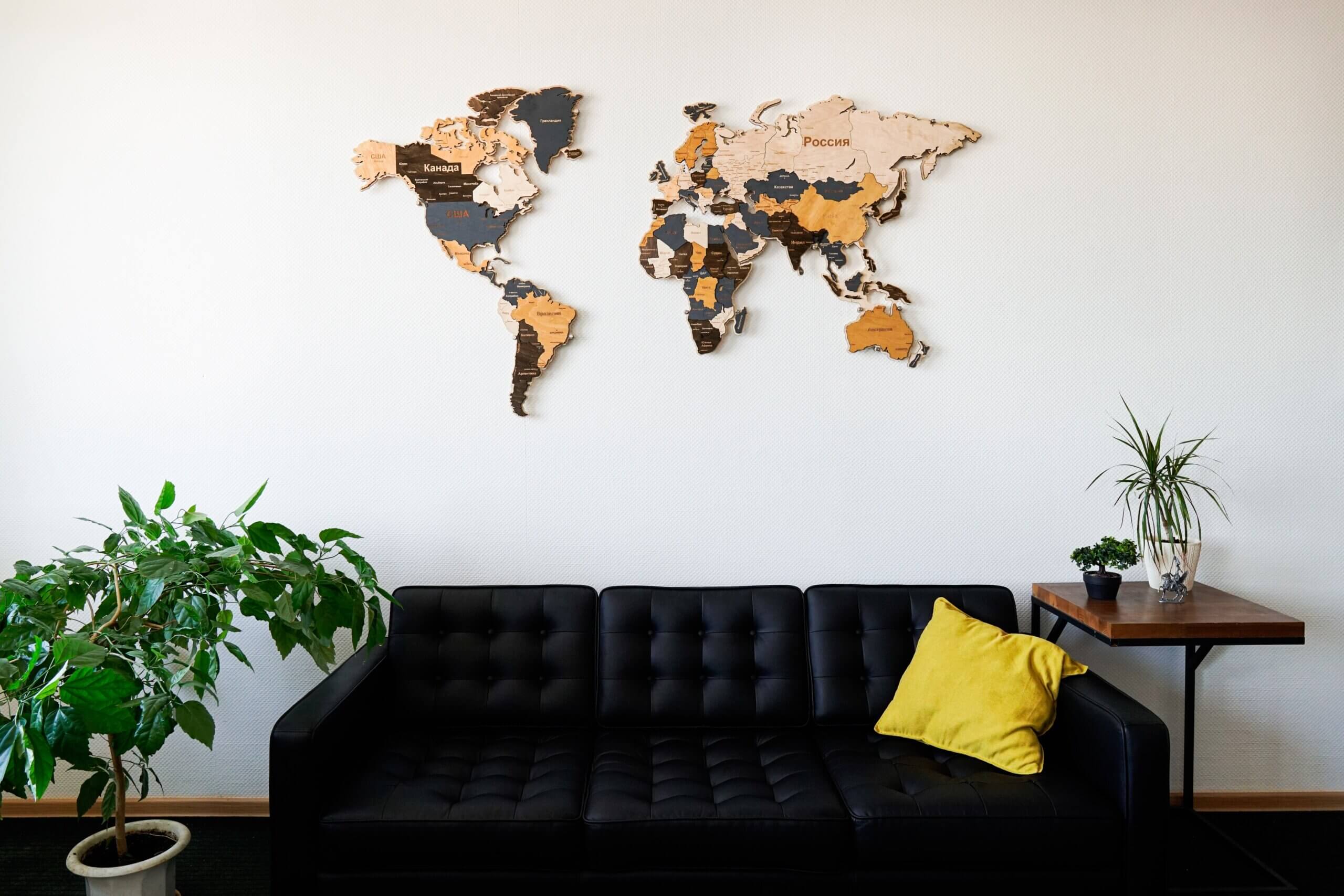 Деревянная карта мира на стену украсит вашу комнату в квартире или доме. Она отлично подойдет как стильный декор в гостиную, прихожую или спальню. Самостоятельная установка карты займет от одного до двух часов. В комплект входит план сборки, который не даст вам ошибиться.