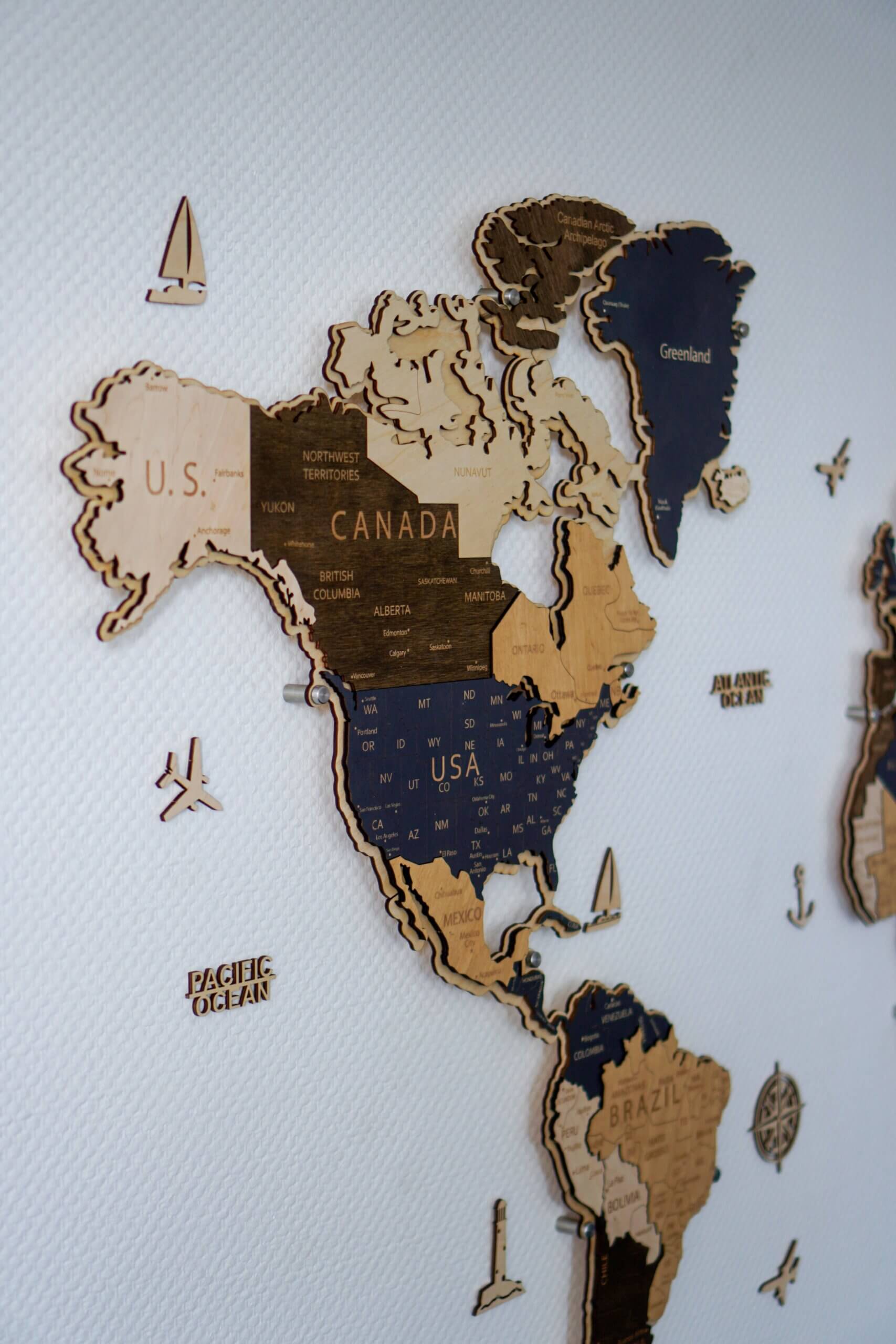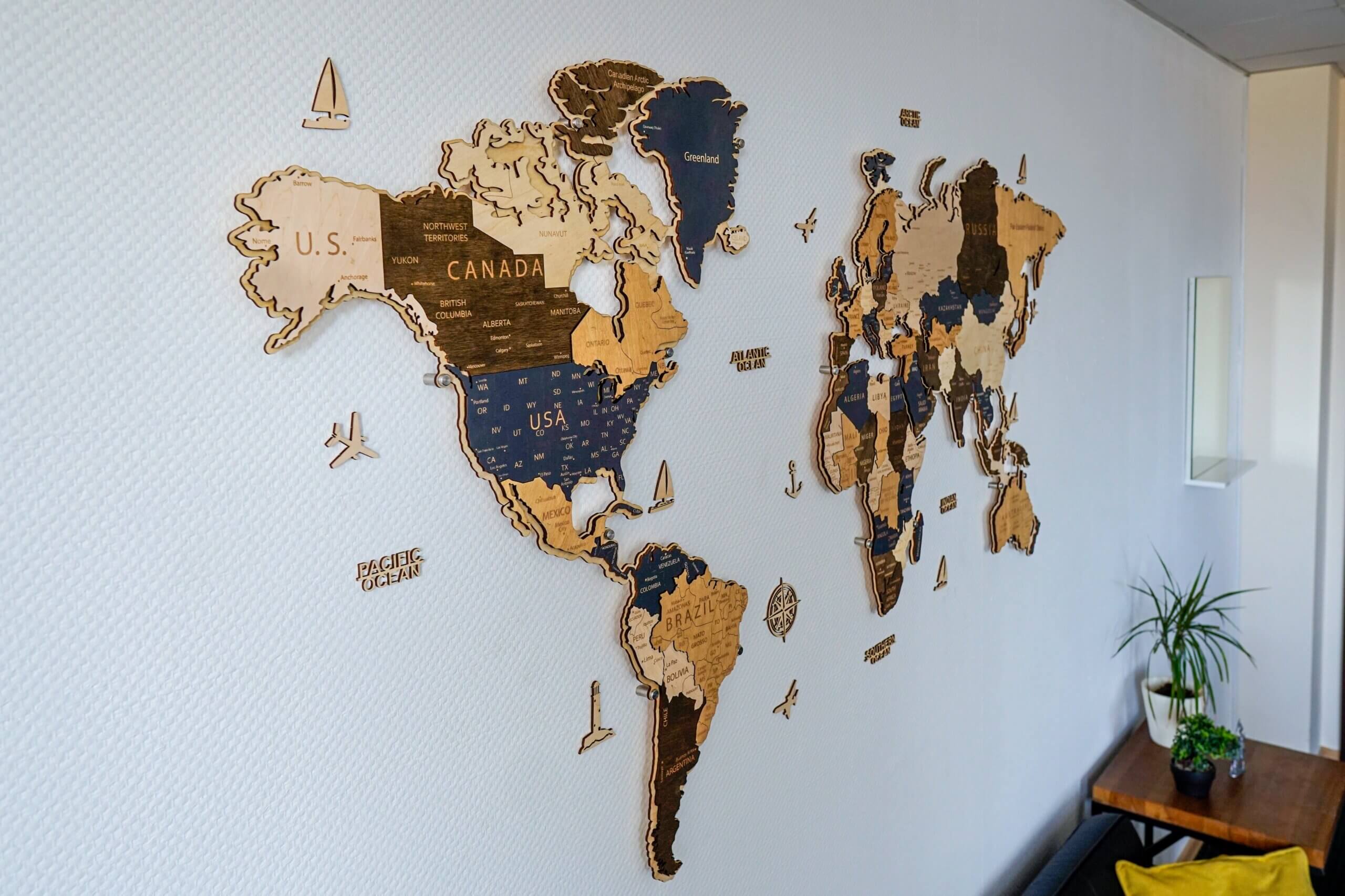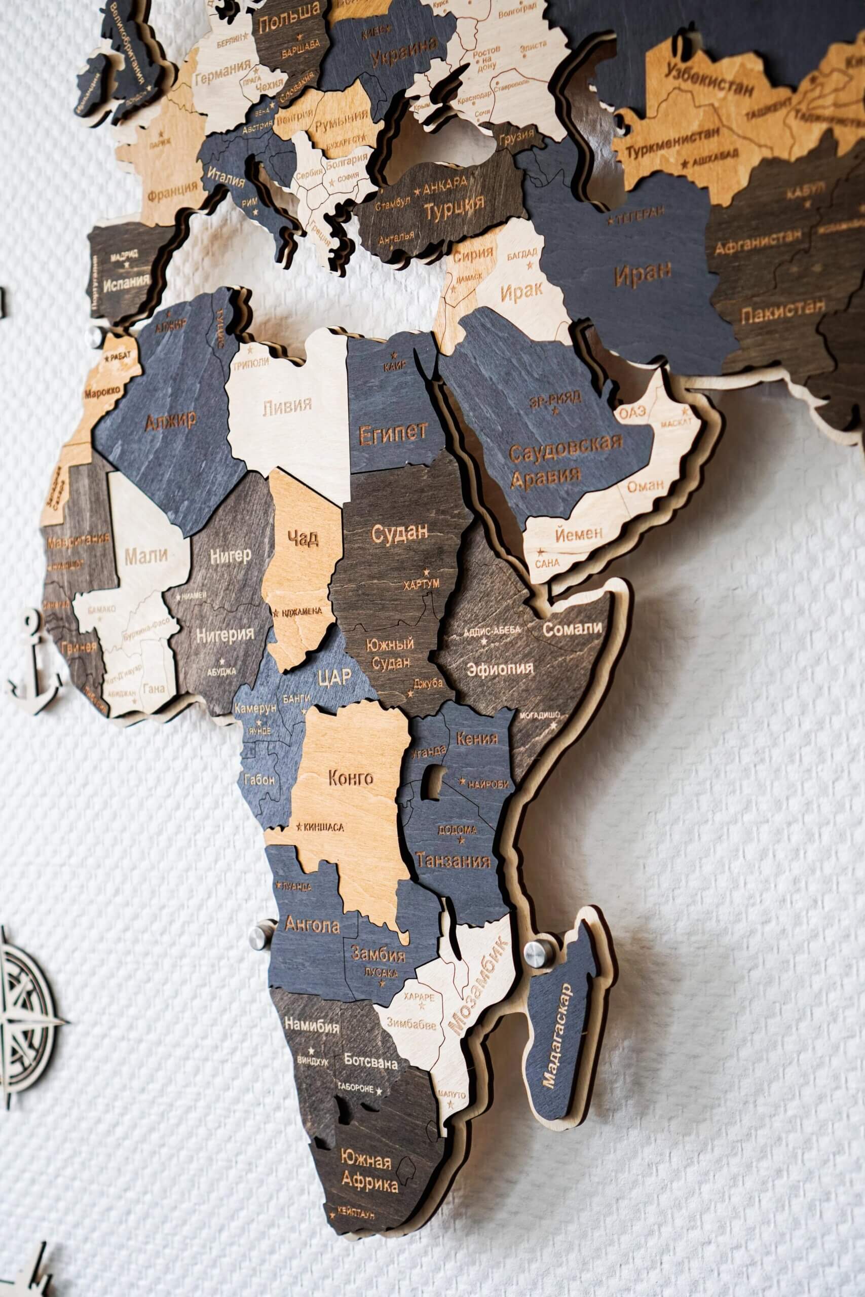 Карта мира из дерева является декоративным товаром, поэтому некоторые маленькие страны и острова могут отсутствовать из-за масштаба.